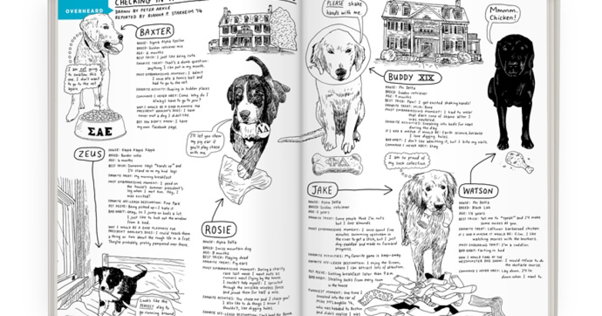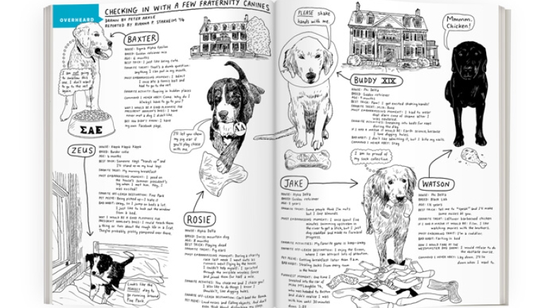 Features Overheard Checking in with a few fraternity canines By ILLUSTRATION BY PETER ARKLE Published in the Jan - Feb 2014 Issue Click here to view a PDF. Write to DAM