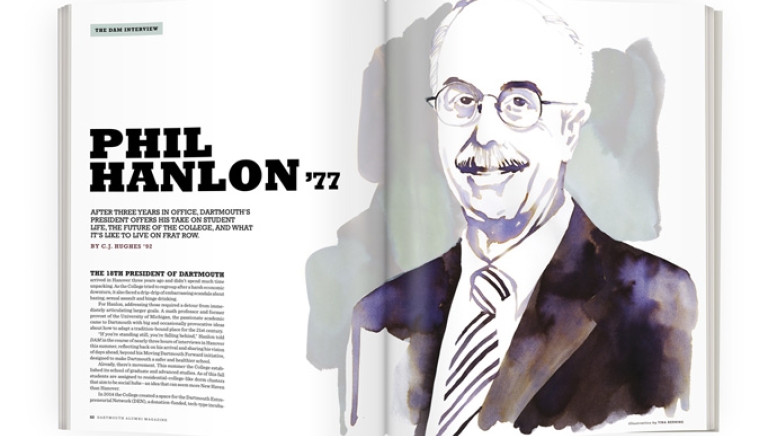 “If you’re standing still, you’re falling behind,” Hanlon told DAM in the course of nearly three hours of interviews in Hanover this summer, reflecting back on his arrival and sharing his vision of days ahead, beyond his Moving Dartmouth Forward initiative, designed to make Dartmouth a safer and healthier school.