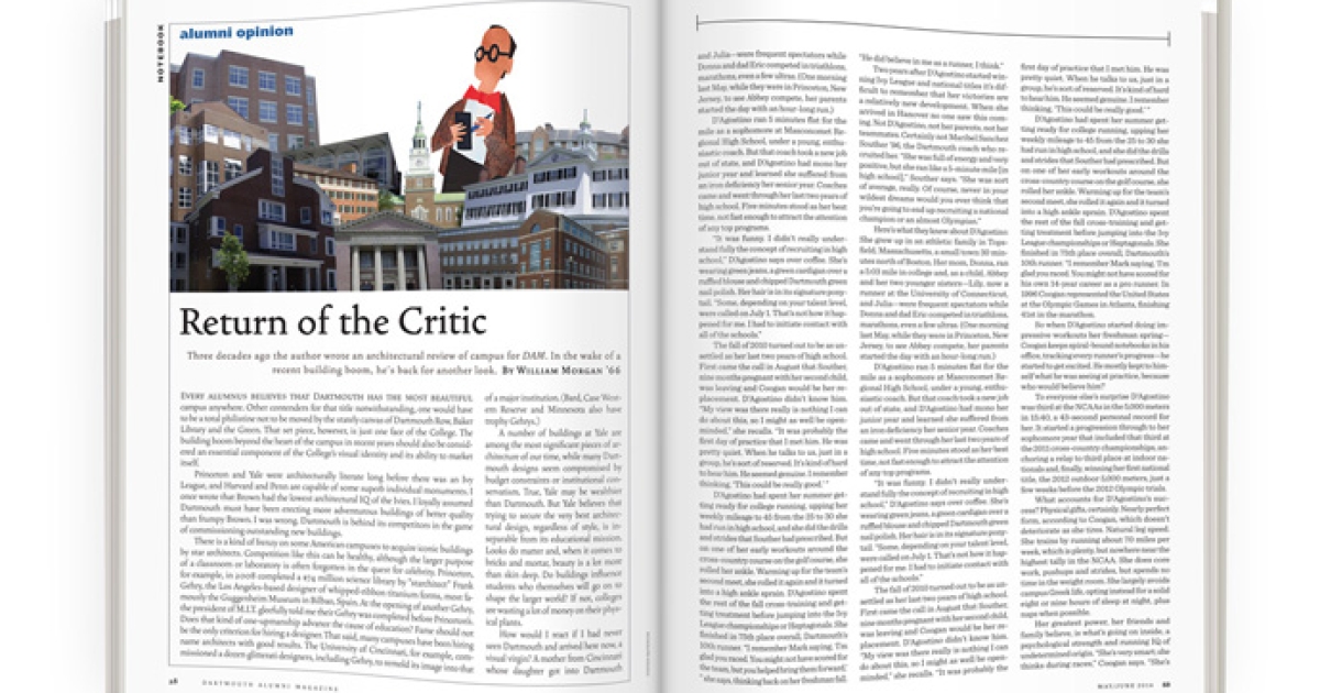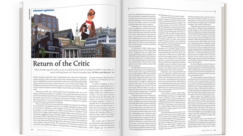 Since so much work and resources go into our built environment it seems especially important to initiate a conversation about architecture on the campus. It is worth exploring both the recent follies and the triumphs at Dartmouth.