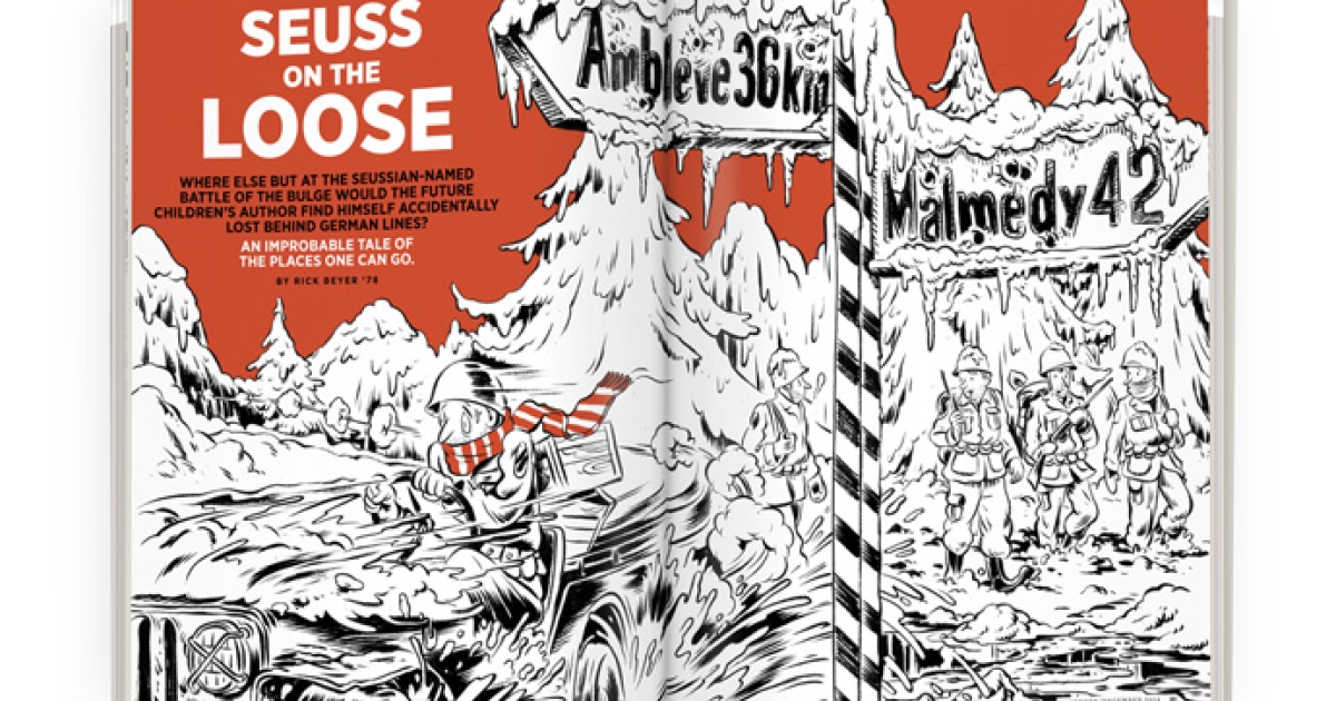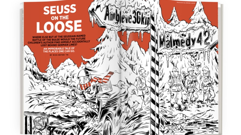 Maj. Ted Geisel ’25 was a strictly rear-echelon officer working on training films for the military. How he happened to find himself in the dangerous position of being threatened by three German Panzer armies is a story with a colorful cast of characters that includes a controversial publisher, a Dartmouth sociology professor, Hollywood director Frank Capra, actress Marlene Dietrich and a top-secret Army deception unit. It is a tale so strange it is a wonder the good doctor didn’t write it himself.