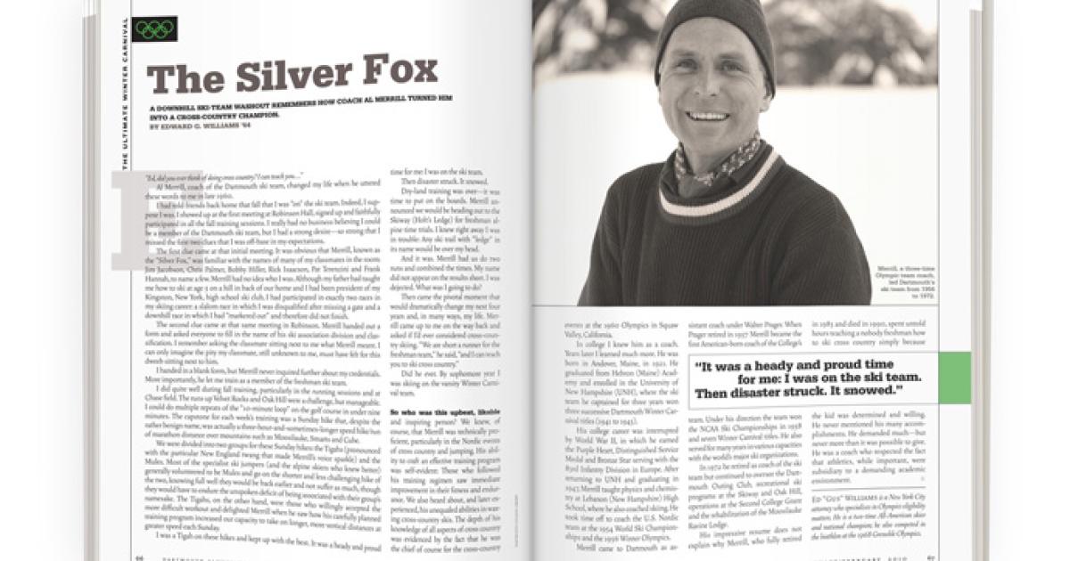 His impressive resume does not explain why Merrill, who fully retired in 1983 and died in 1990, spent untold hours teaching a nobody freshman how to ski cross country simply because the kid was determined and willing. He never mentioned his many accomplishments. He demanded much—but never more than it was possible to give. He was a coach who respected the fact that athletics, while important, were subsidiary to a demanding academic environment.