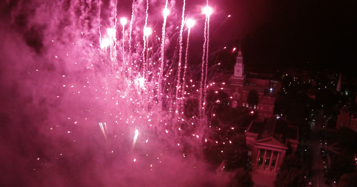 John Pepper ’91 flew a DJI Vision 2+ over the Green to capture this footage during a reunion performance by the Dartmouth Aires.