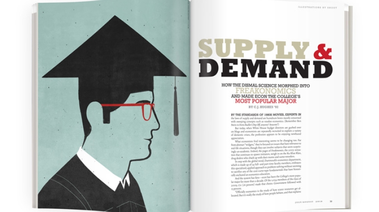 “Officially economics is the study of how scarce resources get allocated. But it’s really the study of how people behave, and that explains why it has such broad appeal,” says professor Bruce Sacerdote ’90, the department’s vice chair.