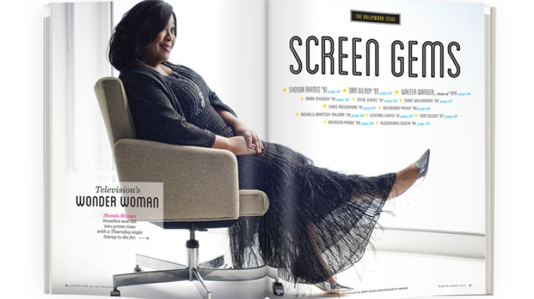 If you’re thinking of asking Shonda Rhimes for any favors, you had better act fast. Because after the TV mogul gives a talk at March’s TED conference in Vancouver, her “year of yeses,” as she calls it, is coming to a close. The dare started around Christmas of 2013, when her sister, Delorse, chided Rhimes for turning down too much. “So my New Year’s resolution was to say yes to the things that scare me,” says Rhimes. The first call she got happened to be from President Philip Hanlon ’77, who asked her to give Dartmouth’s 2014 Commencement speech. “I thought, ‘That sounds terrifying!’ ” says Rhimes. “I don’t like public speaking, so to give the Dartmouth commencement speech? That’s insane. As soon as I hung up the phone, I was like, ‘I can’t believe I said yes to that!’ ”