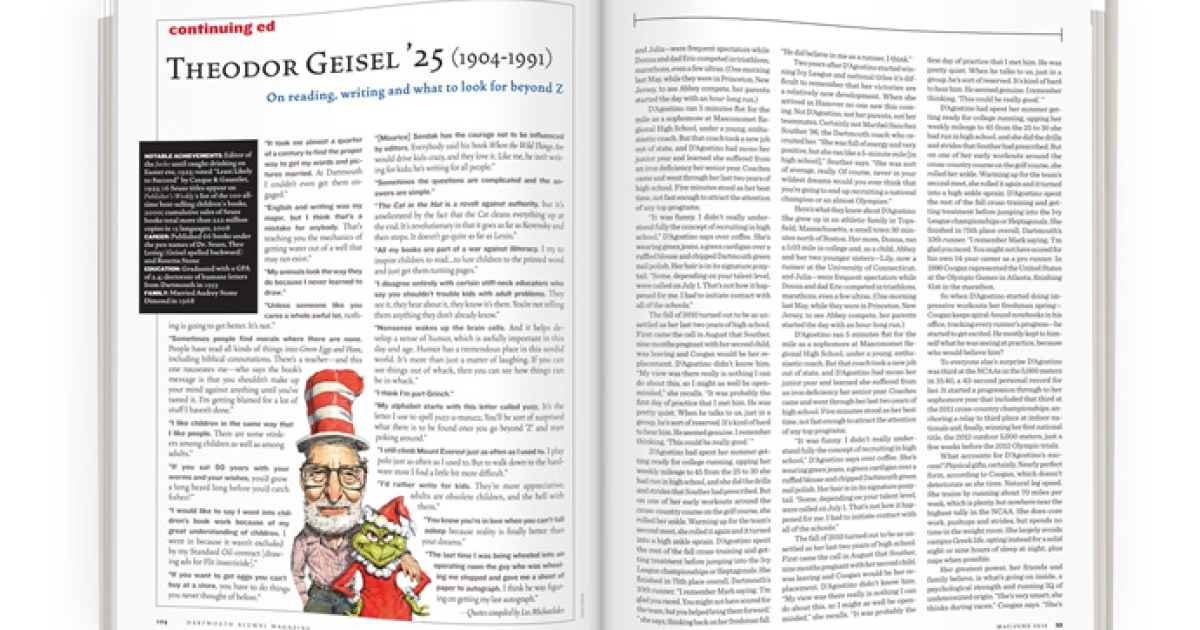Notable Achievements: Editor of the Jacko until caught drinking on Easter eve, 1925; voted “Least Likely to Succeed” by Casque & Gauntlet, 1925; 16 Seuss titles appear on Publisher’s Weekly’s list of the 100 all-time best-selling children’s books, 2000; cumulative sales of Seuss books total more than 222 million copies in 15 languages, 2008