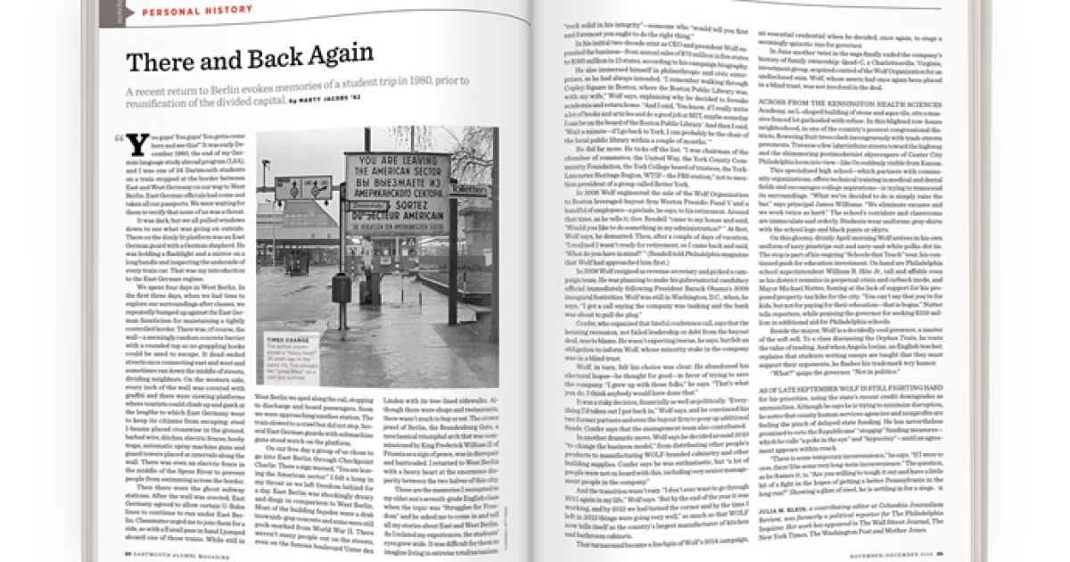 “You guys! You guys! You gotta come here and see this!” It was early December 1980, the end of my German language study abroad program (LSA), and I was one of 24 Dartmouth students on a train stopped at the border between East and West Germany on our way to West Berlin. East German officials had come and taken all our passports. We were waiting for them to verify that none of us was a threat.