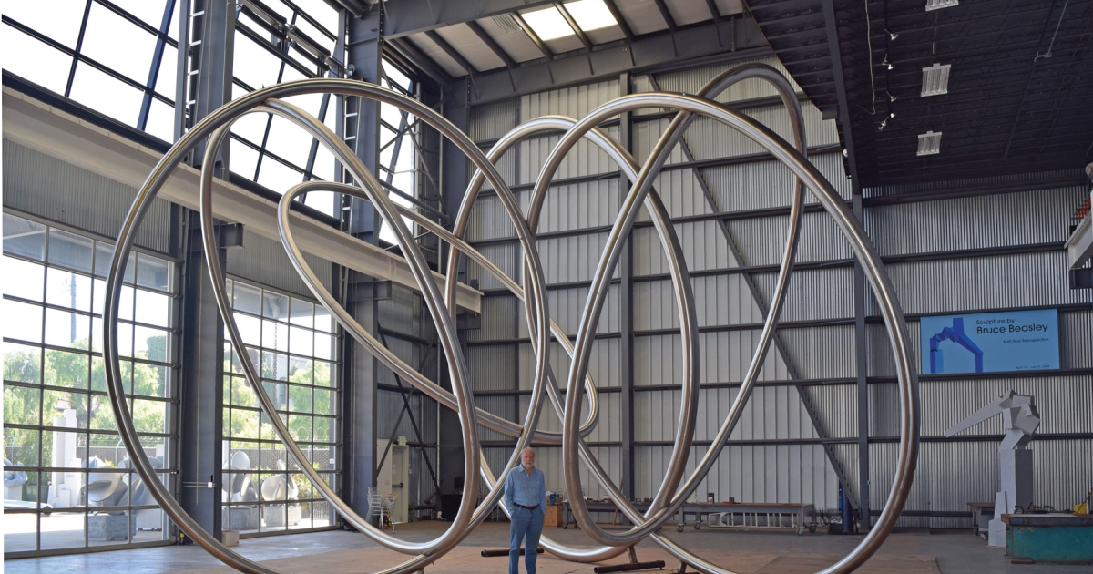 Married and the father of two, Beasley at 82 still logs 9-to-5 days at his home and foundry in Oakland, California, fabricating every piece himself. He created 15 colorful new works during the pandemic. “There’s been no place else to go but into yourself,” he says. “I have the absolute, incredible privilege of making things that simply talk to me.”