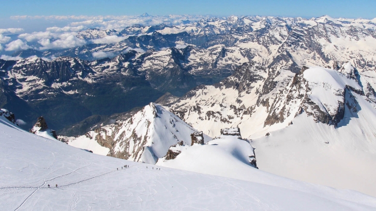 At 10:07 a.m. a group of clumsy British men started their descent, swearing loudly. Two of our three teams had already reached the Madonna statue marking Gran Paradiso’s summit.