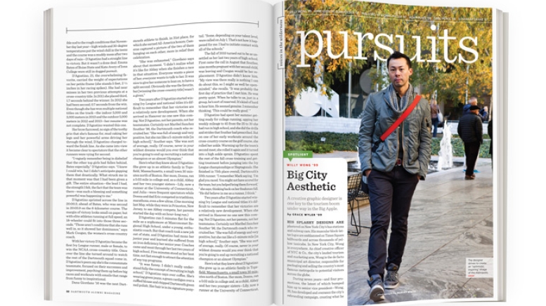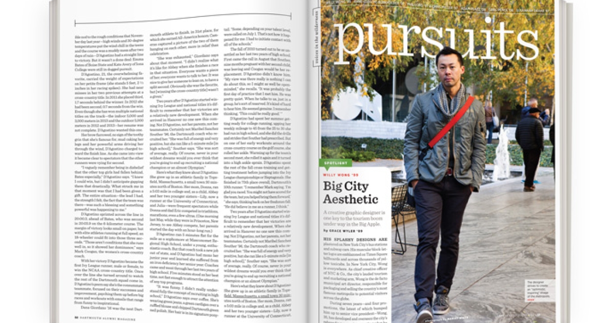 Although Wong did not find his calling as a designer until after graduating from Dartmouth and earning an M.F.A. in graphic design from Yale, he says that lessons he learned from professors in Hanover about creative problem-solving and creating visual narratives inform his work for NYC & Co. Dartmouth animation professor David Ehrlich says Wong’s talent for design was apparent when he taught the student in the spring of 1997. “He combined tremendous creativity with perseverance and a really good personal style,” Ehrlich says. “He was charming and able to captivate the audience and organize things very well, which is exactly what he’s doing in New York.”