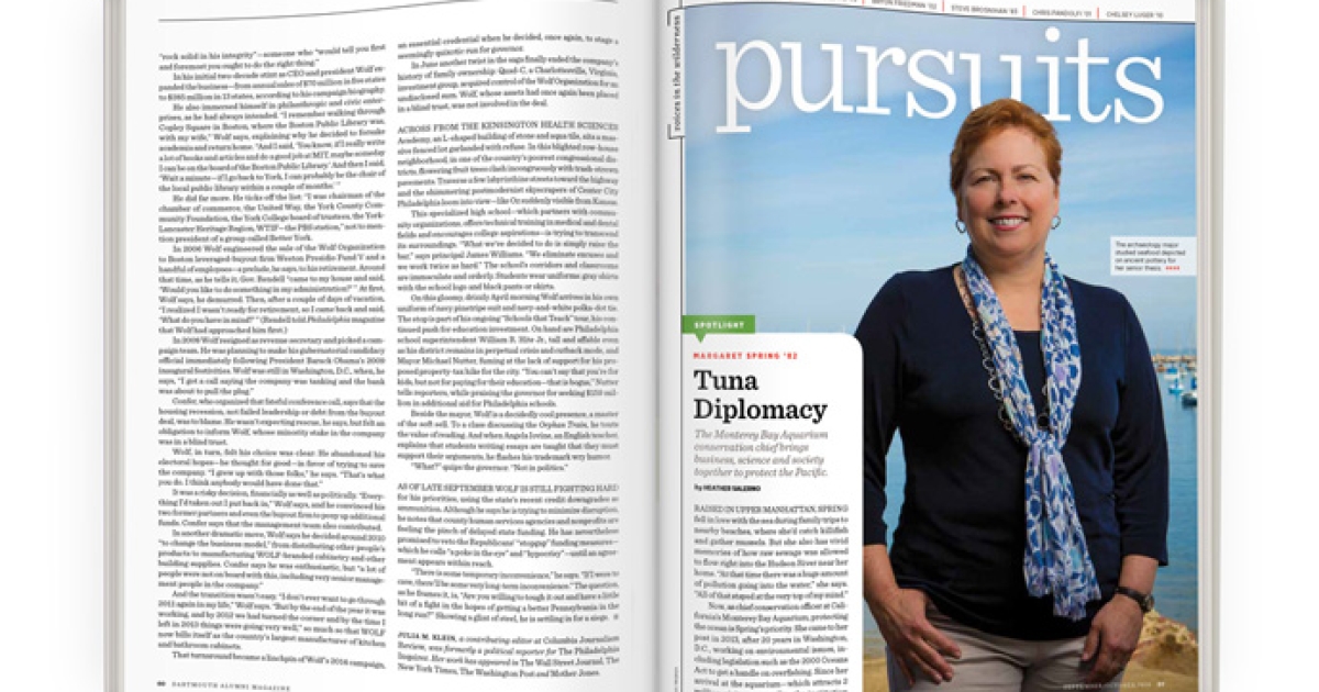 Now, as chief conservation officer at California’s Monterey Bay Aquarium, protecting the ocean is Spring’s priority. She came to her post in 2013, after 20 years in Washington, D.C., working on environmental issues, including legislation such as the 2000 Oceans Act to get a handle on overfishing. Since her arrival at the aquarium—which attracts 2 million visitors annually—the institution has expanded its advocacy role to preserve fisheries and marine ecosystems, as well as endangered species such as sea otters, white sharks and bluefin tuna. “Aquariums are a trusted source of information,” she says. “We have a special voice.”