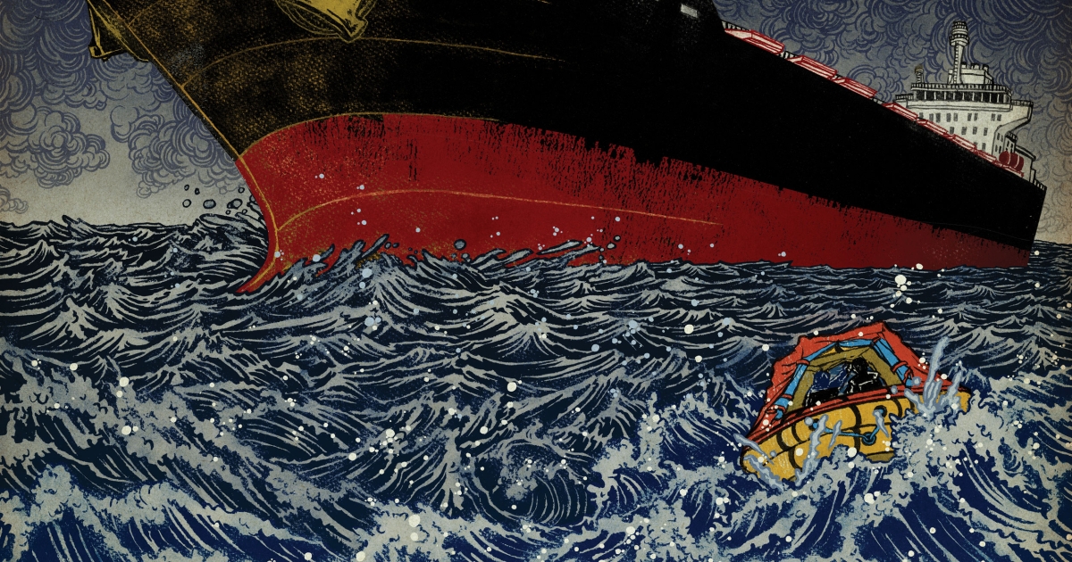 There may be simulators for crashing a plane, but none for avoiding death by an oil tanker while riding a raft not much bigger than a pool inflatable.