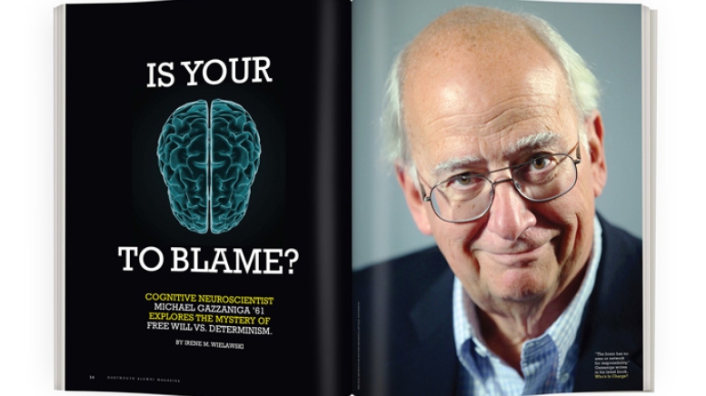 Gazzaniga’s bold stance doesn’t surprise longtime colleagues, nor does his decision to venture from a world in which he’s an acknowledged star into an arena where his ideas threaten the status quo. Quintessential Gazzaniga, they say. Daniel Rockmore, chair of mathematics at Dartmouth, worked with Gazzaniga on functional magnetic resonance imaging (fMRI) studies, and describes him as a “collector of ideas in every possible realm.”