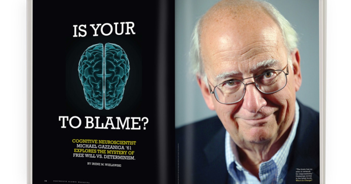 At Dartmouth Gazzaniga dutifully loaded up on science courses, for which he had aptitude and interest. But his ideas about a career began to shift after he read a paper by future Nobelist Roger Sperry for a junior-year seminar taught by professor William Smith.