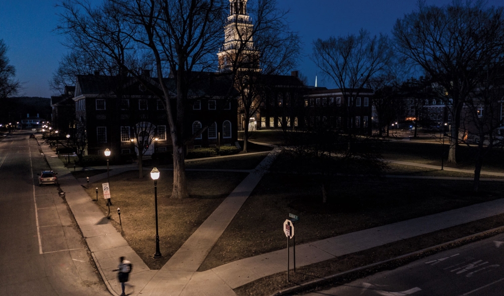 No games. No reunions. No Commencement. But plenty of Zooming. Unprecedented times have created a somber serenity on campus that may last at least through the summer. In these photos, the majestic grounds and facilities of Dartmouth seem to yearn for the human element—for students, professors, anyone—to return and bring back the vibrancy and vitality that make the College so meaningful to so many.
