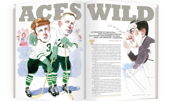 Features Aces Wild An undefeated Ivy League title hung in the balance when the 1958-59 hockey team embarked on a wild, crazy—and premature—celebration.