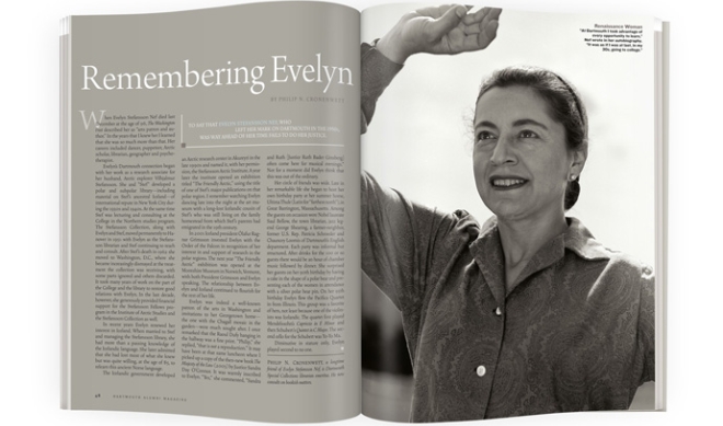 Features Remembering Evelyn To say that Evelyn Stefansson Nef, who left her mark on Dartmouth in the 1950s, was way ahead of her time fails to do her justice.