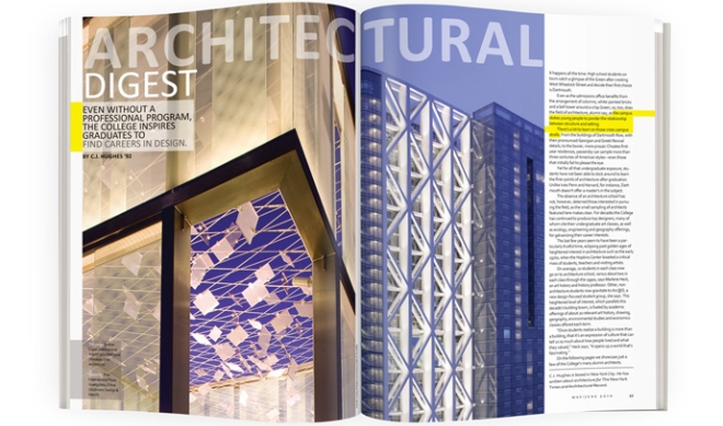 Features Architectural Digest Even without a professional program, the College inspires graduates to find careers in design.