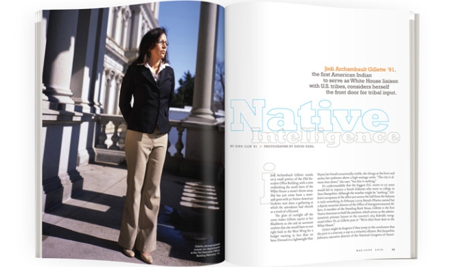Features Native Intelligence Why Barack Obama chose Jodi Archambault Gillette ’91 as the first American Indian to serve as White House liaison with U.S. tribes.