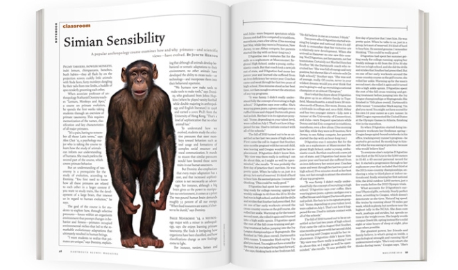 Features Simian Sensibility A popular anthropology course examines how and why primates—and scientific views—have evolved.