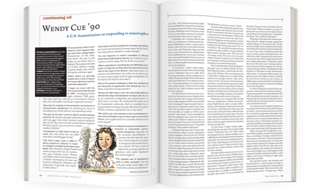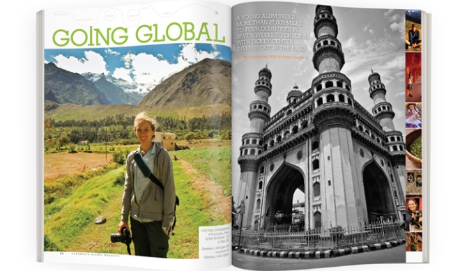 Features Going Global A young alum treks more than 27,000 miles in seven weeks to check in with Dickey Center interns working in the field.