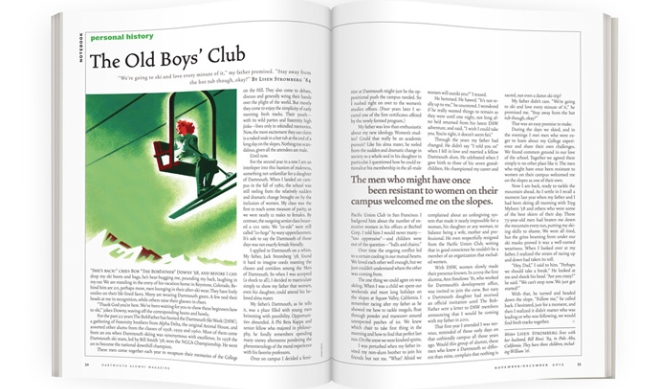 Features The Old Boys’ Club “We’re going to ski and love every minute of it,” my father promised. “Stay away from the hot tub though, okay?”