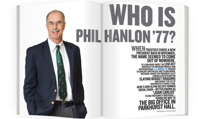 Features The New President Here’s how Phil Hanlon ’77—better known as “Juan Carlos” to his fraternity brothers—found his way to the big office in Parkhurst Hall.