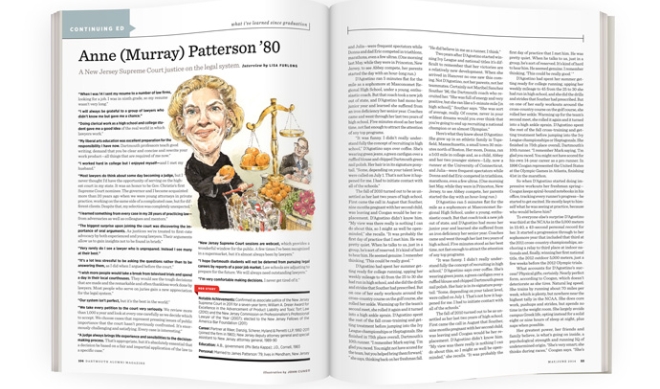 Features Anne (Murray) Patterson ’80 A New Jersey Supreme Court justice on what she’s learned since graduation.