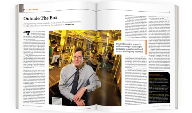 Features Outside The Box An engineering course taught by Peter Robbie ’69 encourages students to forego the status quo.