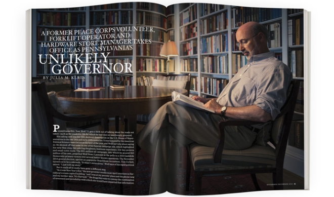As a former Peace Corps volunteer, forklift operator and hardware store manager, Democrat Tom Wolf ’71 brings an unusual resume to Pennsylvania politics.