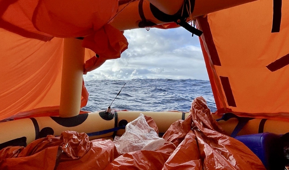 A crewmember photographed the raft, which was barely visible from the Horizon Reliance. “Many of the deckhands were on their first trip at sea, and for most this was their first actual, non-simulated rescue,” says Johansson.