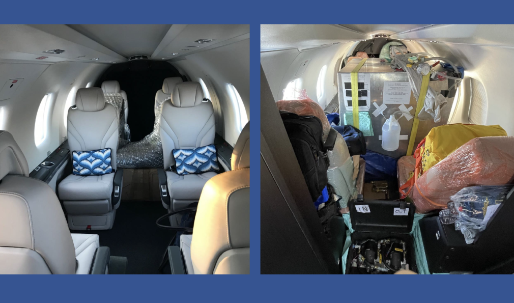 Before and after images of the passenger/cargo area, which Johansson modified to accommodate more fuel