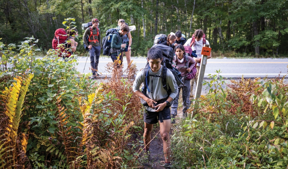 Coleader Josh Lee ’26 and his group set out on a three-day hiking excursion on September 8 at Baker Pond Trailhead. He was joined by Anika Roy ’28, Dean Gustavson ’28, Claire Kull ’28, Benjamin Hsieh ’28, Will Pittman ’28, Agatha Curylo ’28, Charlie Peers ’28, and coleader Mia Jones ’27.