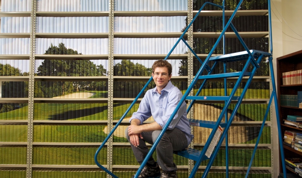 As founder and CEO of Juniper Books, Thatcher Wine ’94 has earned a chapter in publishing history thanks to his controversial invention: the book mural, his patented technique that splashes one image across the spines of multiple books. The result is eye-popping—a 4-foot-tall Eiffel Tower splintered into dozens of covers gracing a design showroom, a wall-spanning Brooklyn Bridge stretching across hundreds of books for the shelves of a homesick ex-Manhattanite.