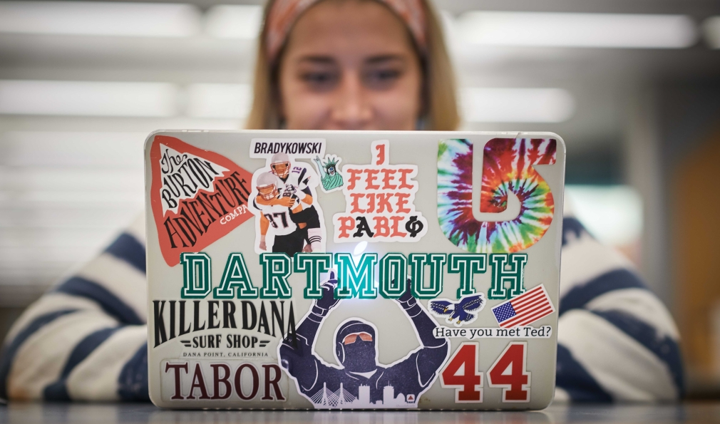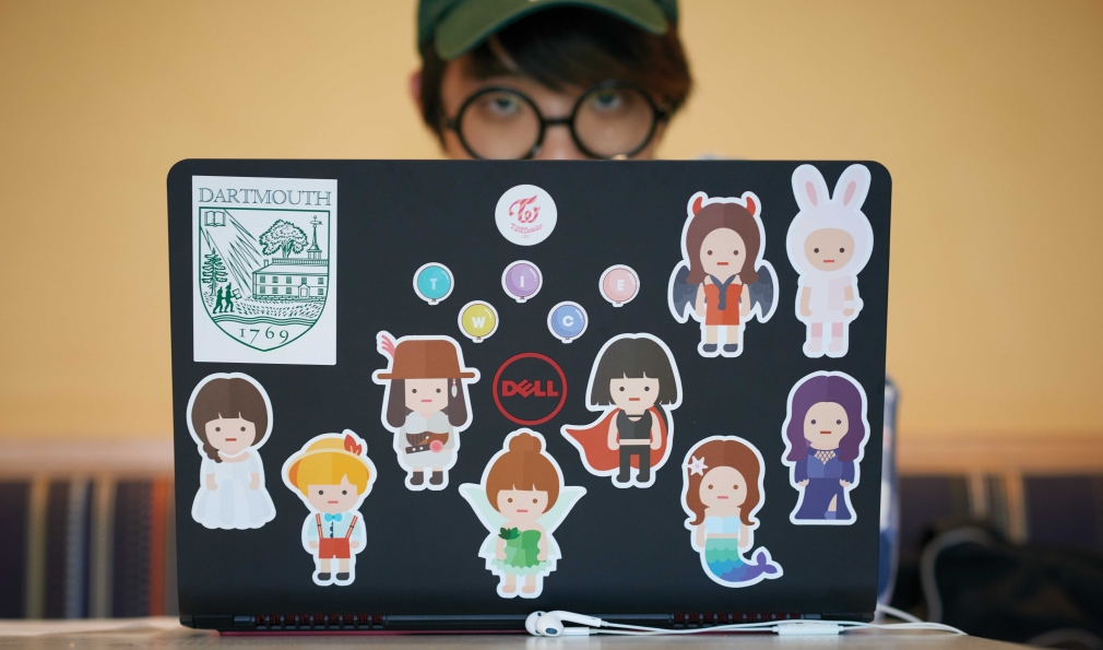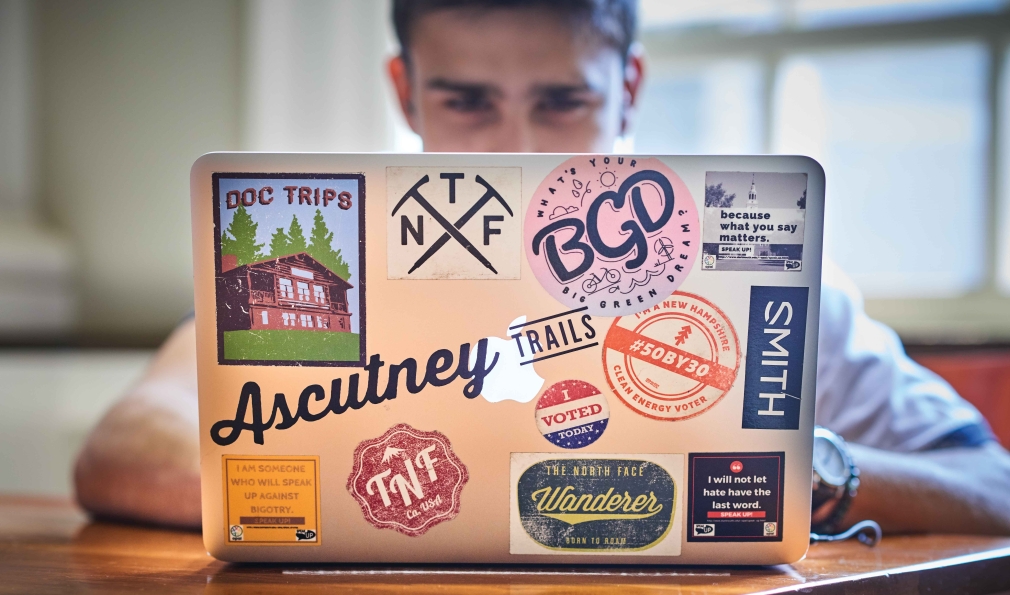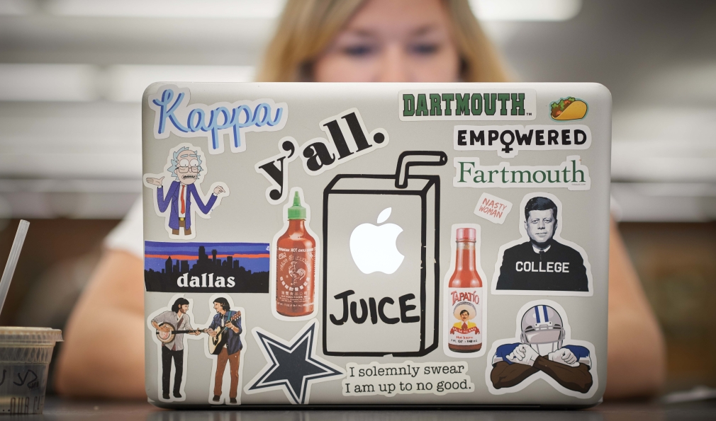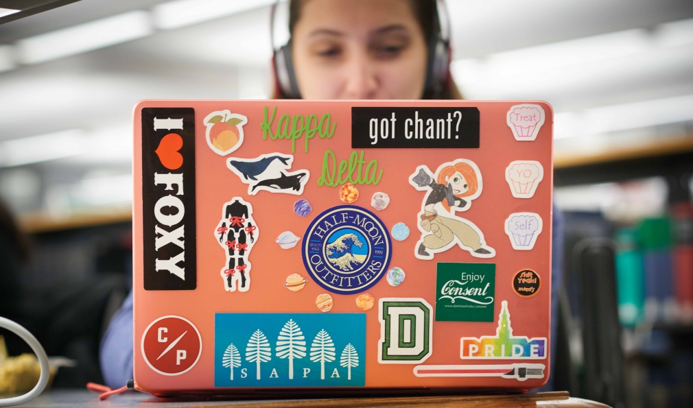 While students decorate themselves with flair, they adorn their laptops with a wide array of stickers—as spotted in the library during Sophomore Summer finals week. “The stickers all say different things about me and things that make up who I am,” says Hannah Pruitt ’19.