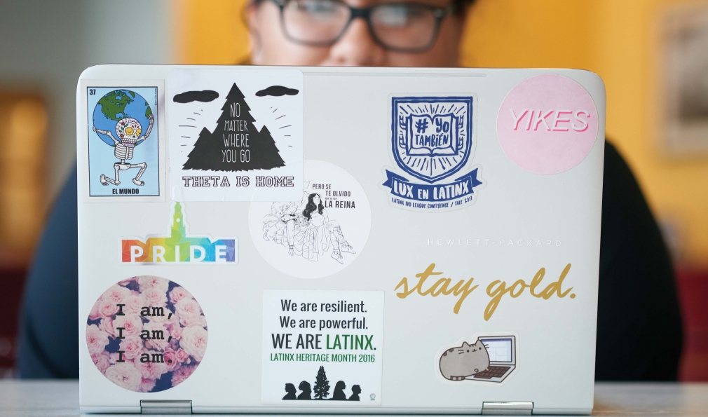 While students decorate themselves with flair, they adorn their laptops with a wide array of stickers.