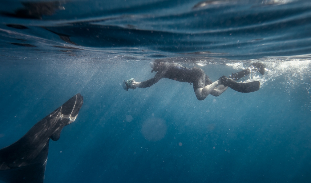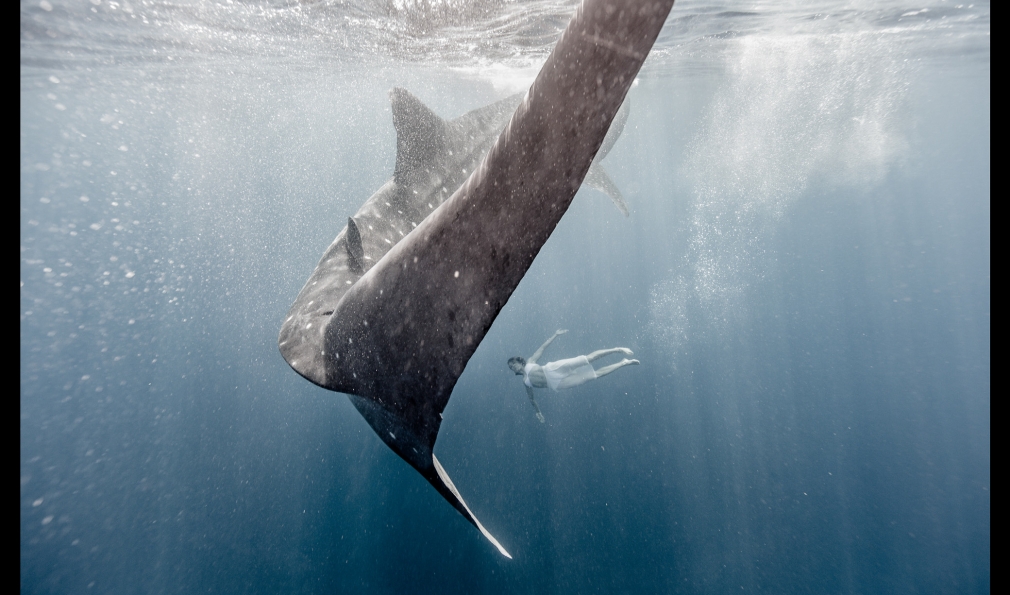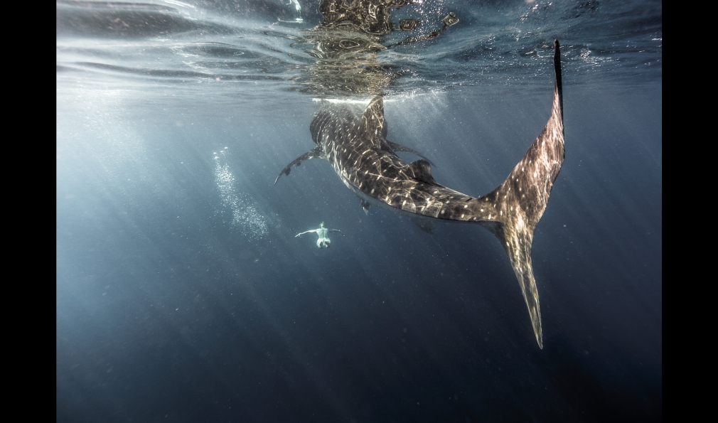Award-winning photographer and director Tyler Stableford ’96 recently embarked on a passion project that became his most challenging photo expedition: capturing a human swimming alongside whale sharks off the coast of Mexico.