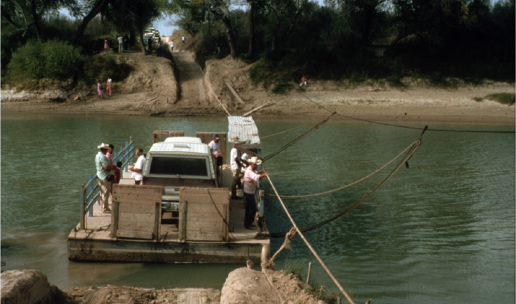 Hand-pulled ferry between Los Ebanos, Texas and Diaz Ordaz, Mexico