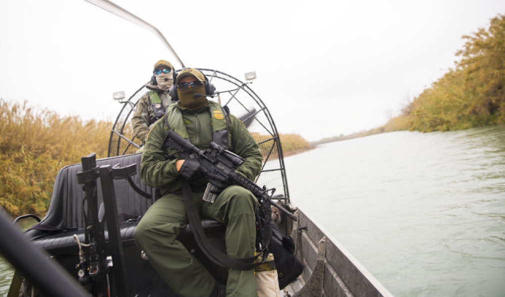 Border patrol agents prepare for a day of monitoring the river. More than 1,200 miles of the Rio Grande separate the United States and Mexico. (Courtesy Mike Kane/Disappearing Rio Grande Expedition)