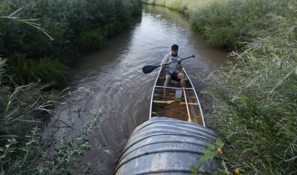 Realizing there was more water in the irrigation ditches than the river, McDonald took his canoe wherever the water led. (Courtesy Erich Schlegel/Disappearing Rio Grande Expedition)