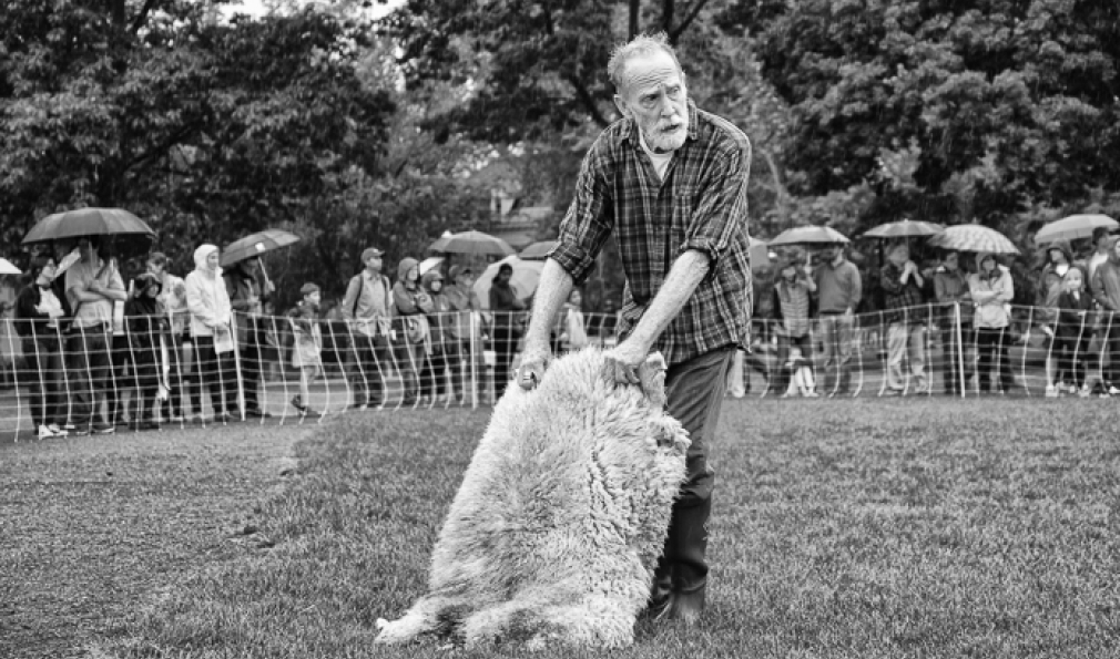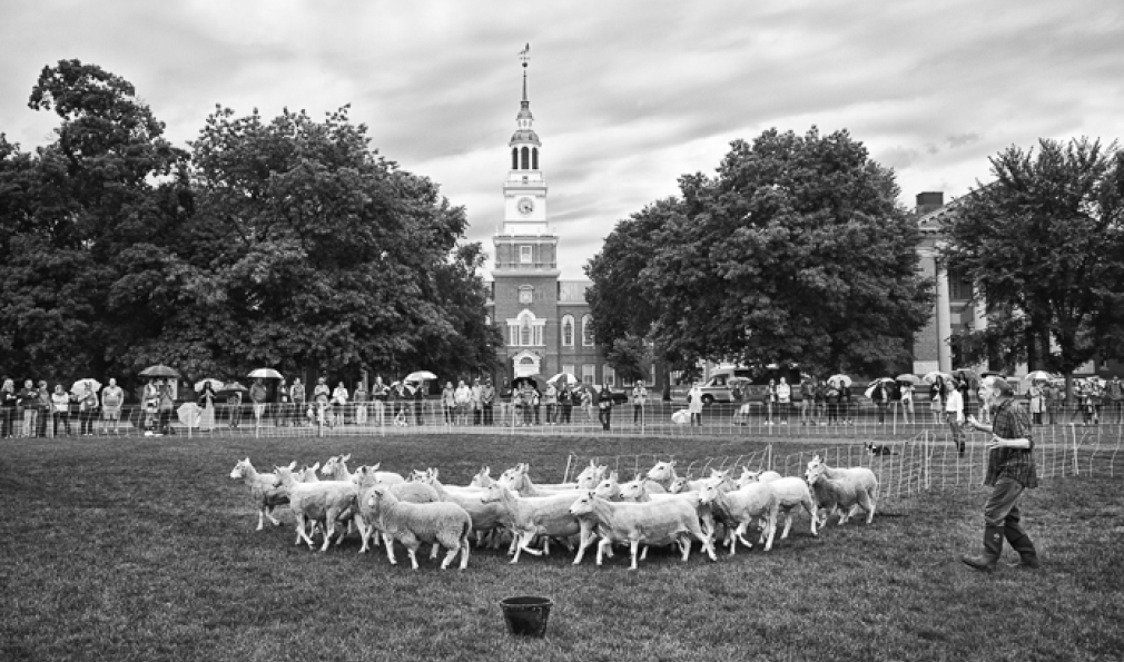A herd of sheep. Three sheepdogs. And five human actors. All converged on the Green for the public debut of Doggie Hamlet.