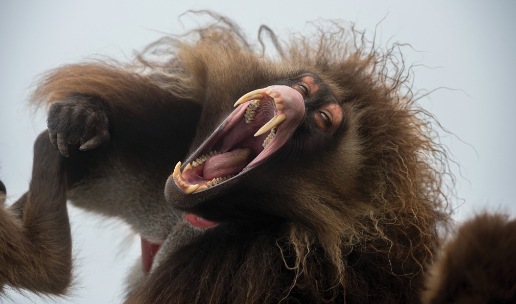 “I sat for 35 minutes waiting for this guy to yawn,” says Kerby, who took this shot of a male gelada monkey on a foggy morning in the Ethiopian Highlands.
