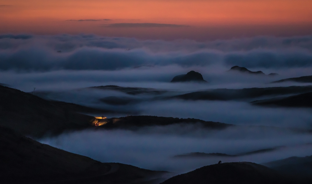 Clouds from the Great Rift Valley spill over onto the alpine plateau in central Ethiopia.