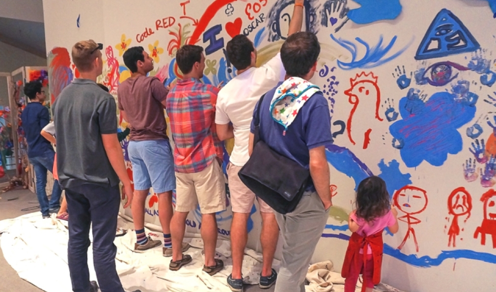 Visitors paint on the museum walls and contribute to the paint-by-numbers mural. (Courtesy Alison Palizzolo)