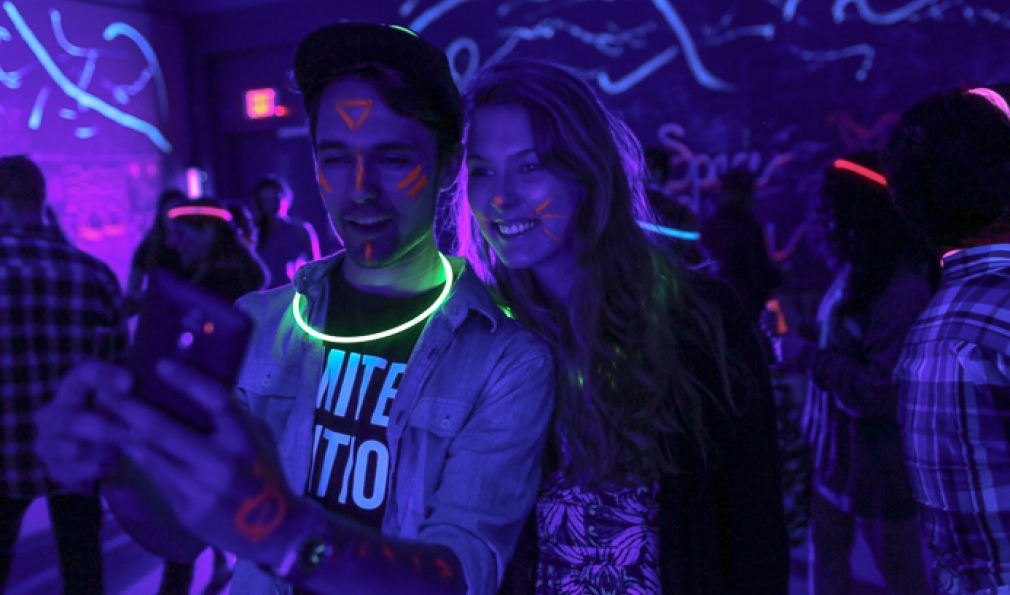 Dartmouth students dance to music by 802DJ during the black light party. (Courtesy Rob Strong)