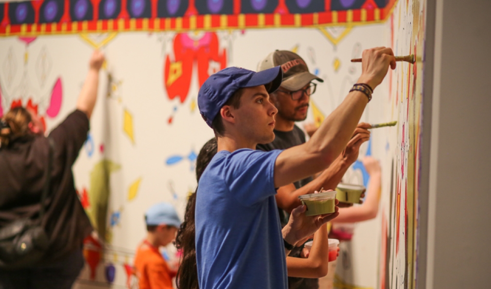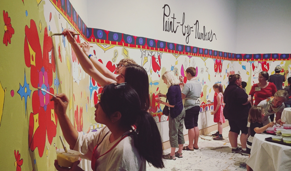 Visitors paint on the museum walls and contribute to the paint-by-numbers mural. (Courtesy Rob Strong)