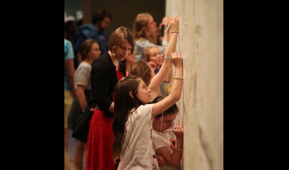 On May 21, 2016, the writing was on the wall—literally—as the Hood Museum celebrated its final days before closing for a multi-year renovation and expansion project. Nearly 1,600 guests left their marks on the gallery walls during the event, which also featured food, live music and a black light dance party.
