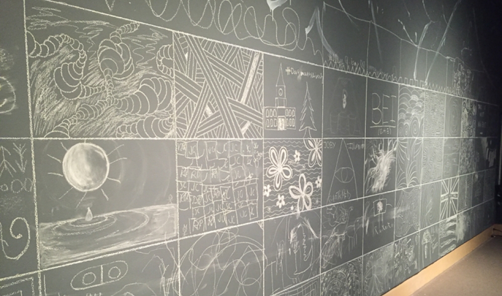One of the walls from the “Choose a Space, Make a Pattern” chalk mural. (Courtesy Alison Palizzolo)