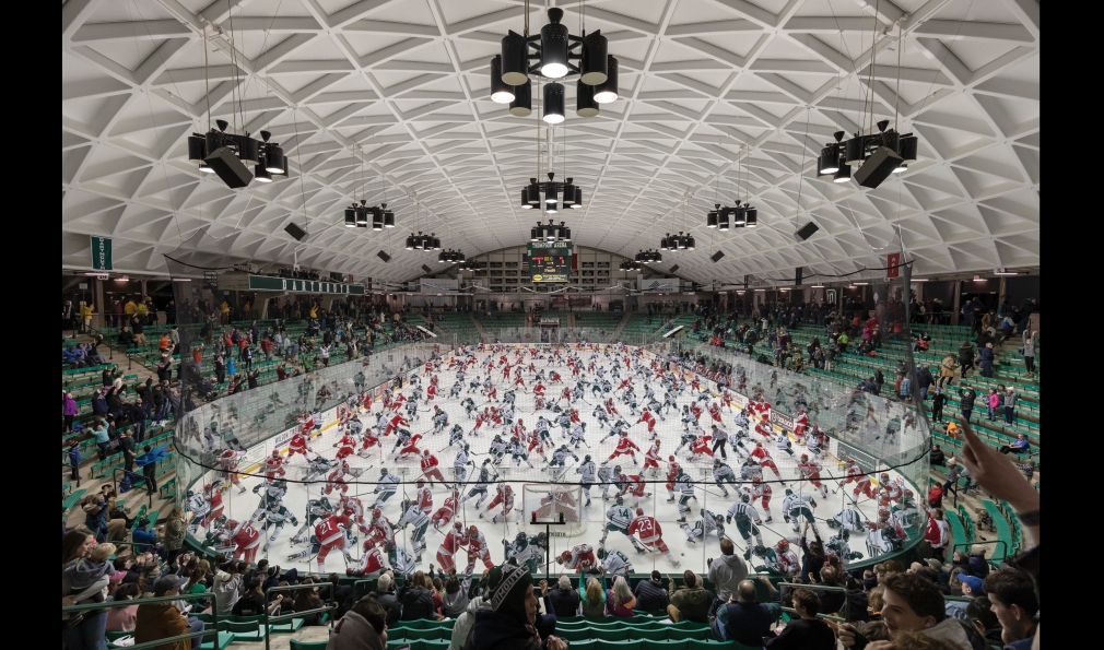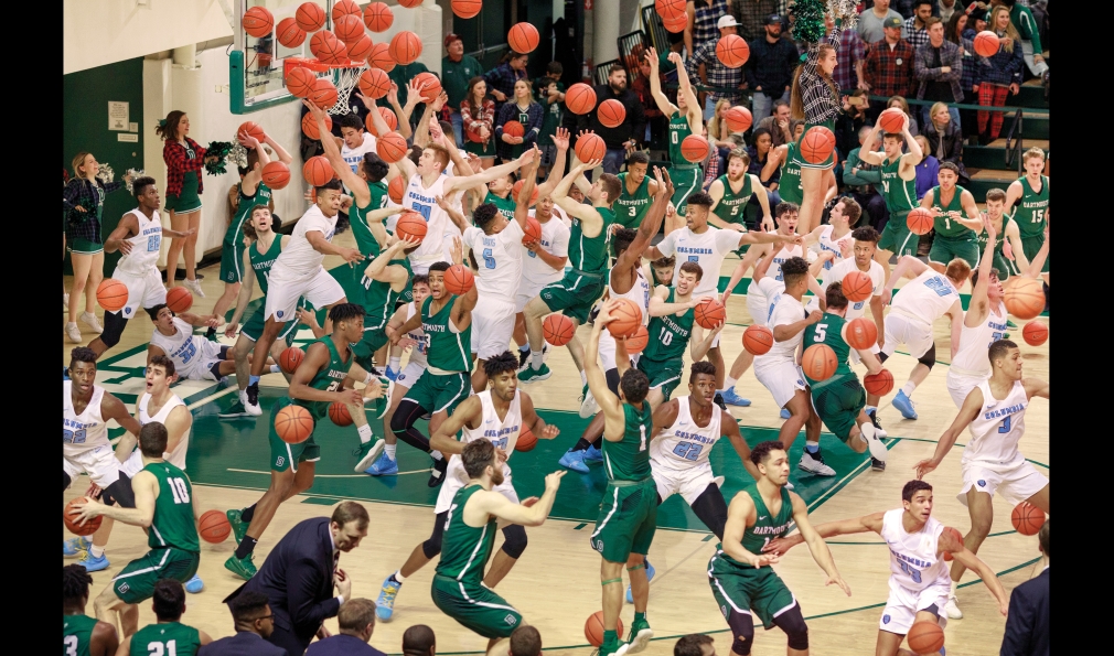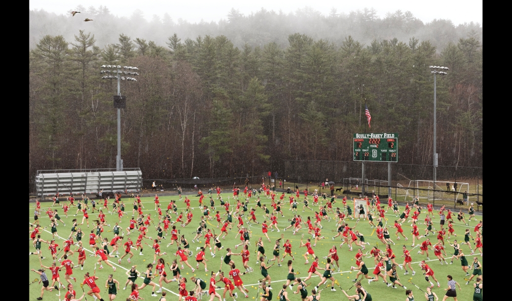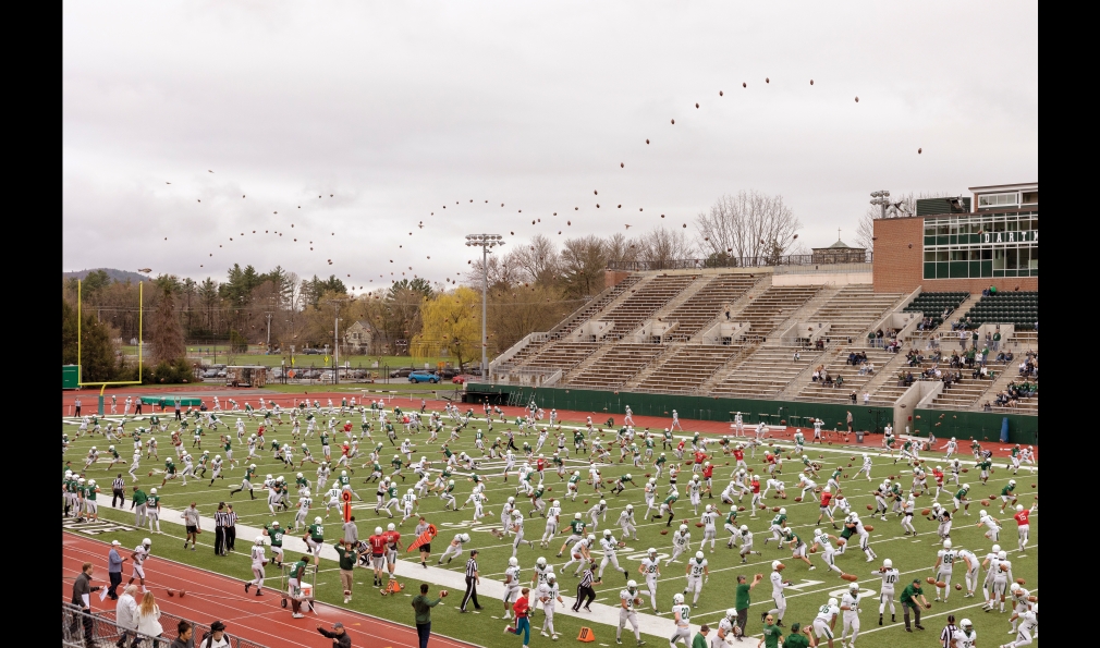 If a picture is worth a thousand words, these images are worth millions: They’re the result of more than 18,400 exposures made during six athletic contests on campus in recent months. “What I do is a kind of still time lapse,” explains photographer Pelle Cass. “I set up my camera on a tripod and stay in the same position the whole game.” Then he spends about 40 hours on a computer to assemble a final piece of art. “I try to convey a sense of ecstatic chaos—rhythm, pattern, and bodily pleasure that conspire to turn sports back into a game, one that may be invisible to the eye but clear to my camera,” says the fine arts photographer whose work is in the collections of Harvard’s Fogg Museum, the Polaroid Collection, and the Museum of Fine Arts, Houston. In the process he never moves elements within the frame—all athletes are positioned exactly where they were during the game. The results are mesmerizing.