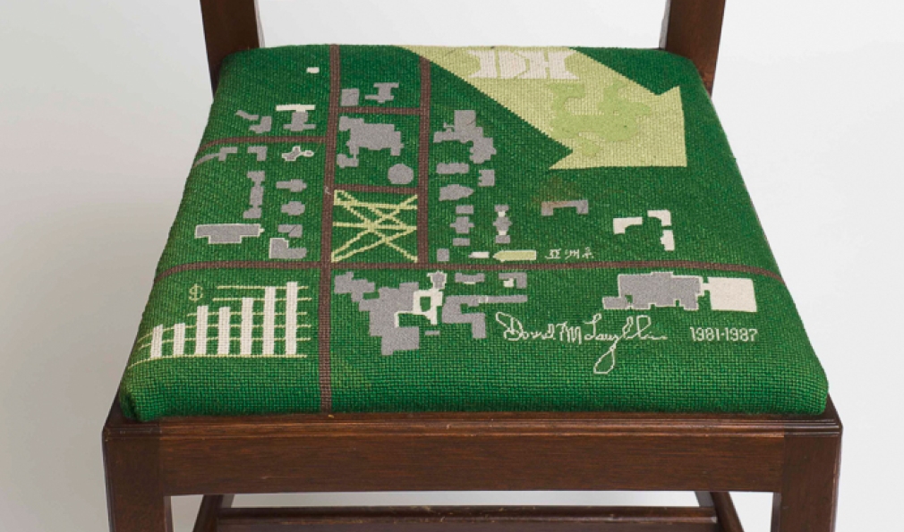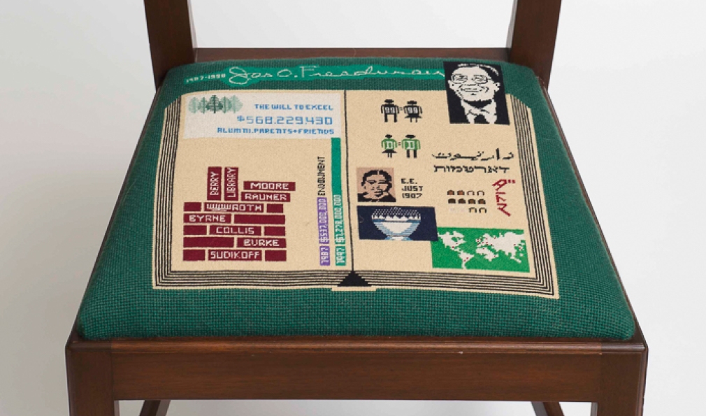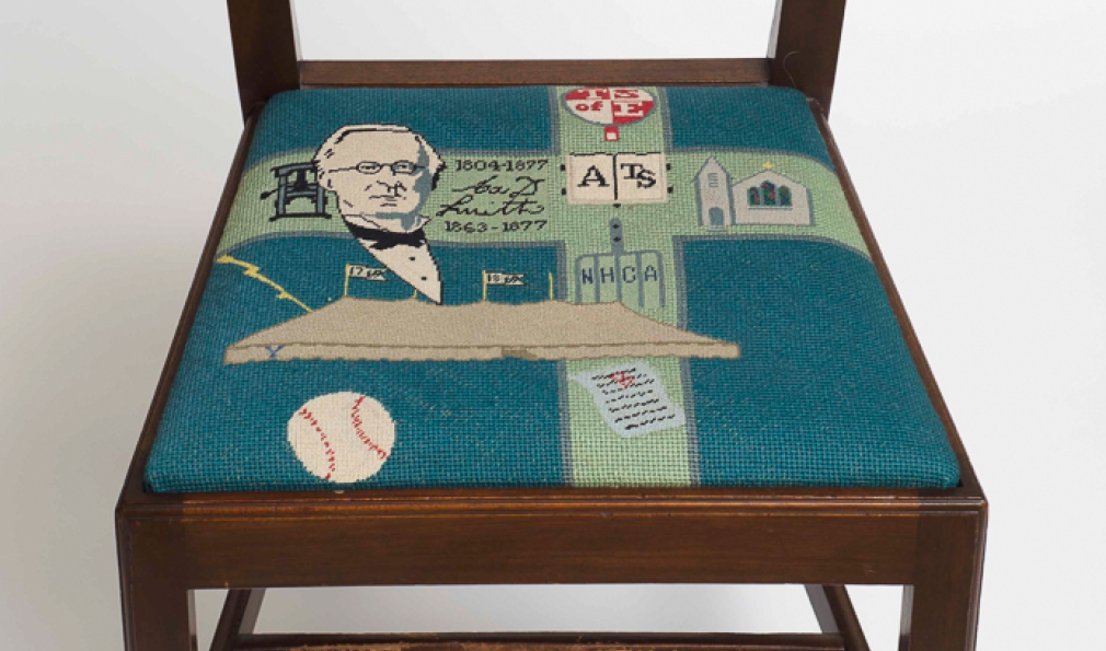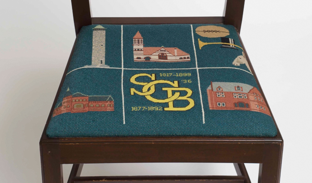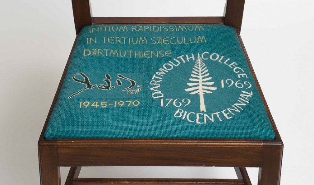 Eighteen presidents have served the College, but only after they retire do they attain a true seat of power at the president’s mansion. Sixteen custom seat cushions adorn the chairs used in the dining room there, each representing a past president. (Jim Kim’s is currently in the works.) The cushions originated in 1958, thanks to an idea from College designer John Scotford ’38, needlework by descendants of John Sloan Dickey ’29, among others, and chairs crafted in the student woodworking shop.
