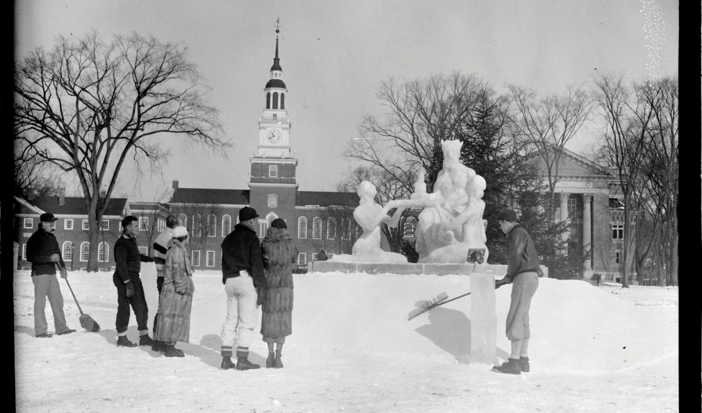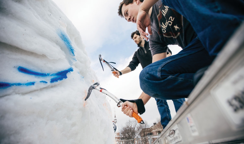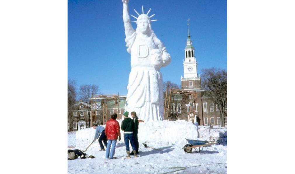 During the past century, there’s hardly been a winter without a snow sculpture rising up from the center of the Green.